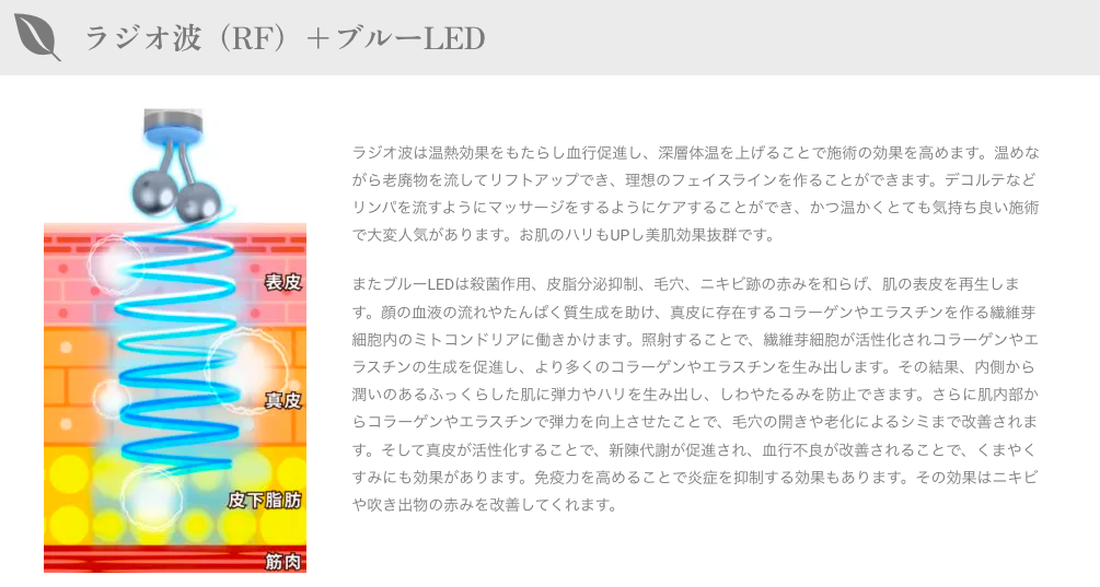 ラジオ派と組み合わせてエイジングケアを目指すフェイシャルです。