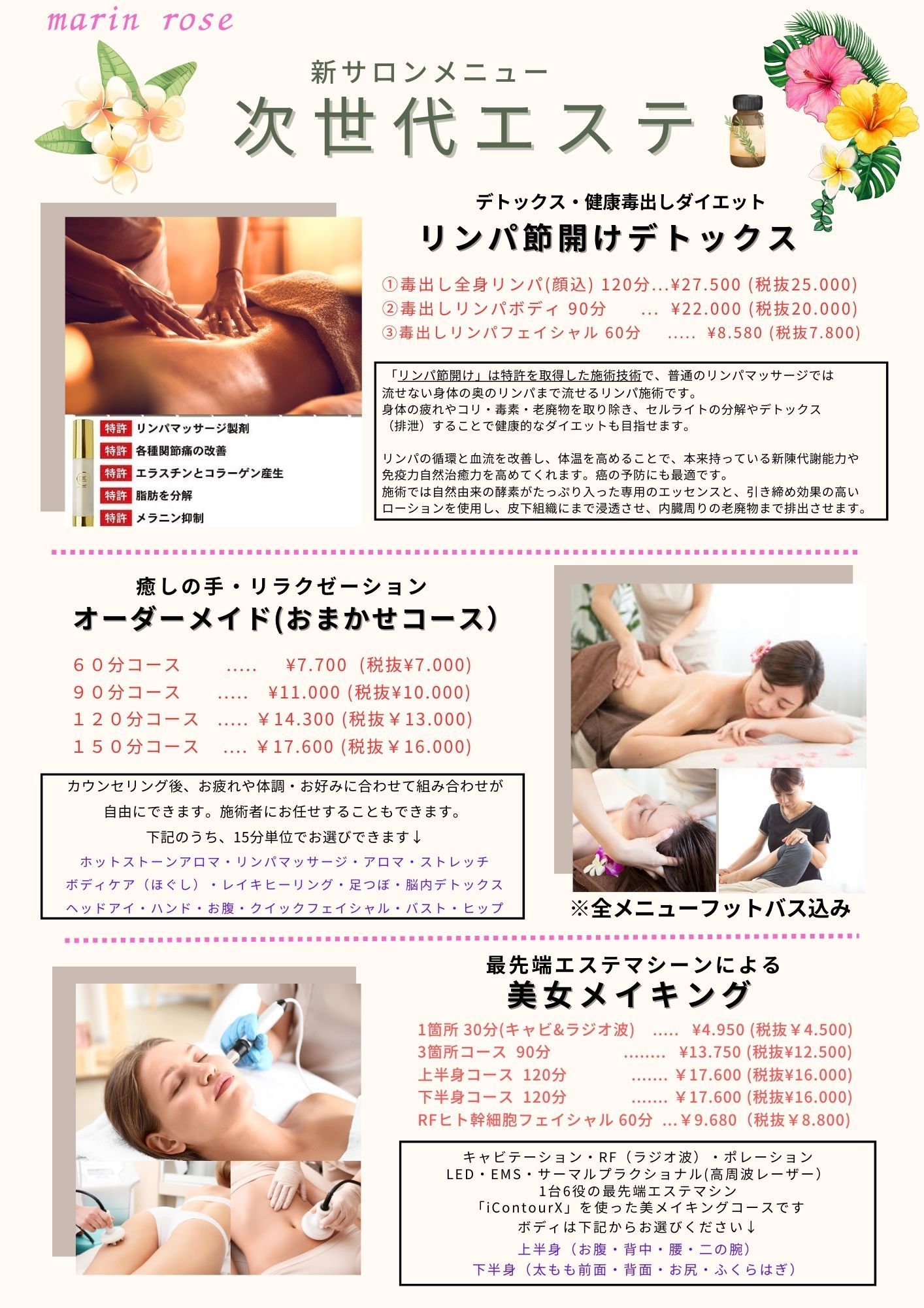 ①毒出し全身リンパ(顔込) 120分...¥25,000 (税込 ¥27,500)