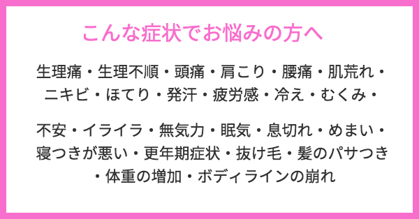 骨盤のゆがみを改善することで、女性ホルモン活性の手助けも可能となります。